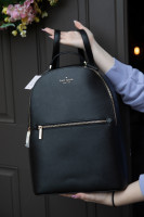 Back in Black Kate Spade Black Perry Backpack. Adjustable Backpack Straps. Exterior Zipper Pocket. Two Interior Pockets. 15" x 13" | 127 | silent | $ 320.00 |