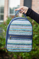 Am I Blue? Tommy Bahama Blue & Purple Crochet Backpack. Adjustable Backpack Straps & Top Handle. Zip Closure with and Exterior Zipper Pocket. Three Interior Pockets, One with Zip Closure. 13" x 10" | 132 | silent | $ 35.00 |