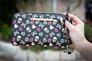 Punk Rock Princess Betsey Johnson Skull & Bow Wristlet, Removable Wristlet Strap, Zip Closure, Three Interior Pockets, One with Zipper Closure, 12 Credit Card Slots. Earrings. 8" x 5" | 139 | silent | $ 55.00 |