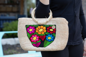 Flower Power Mexican Applique Straw Embrodied Bag with Two Handles and Zip Top Closure. 15" x 9" | 144 | silent | $ 35.00 |