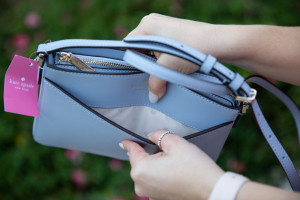 Kate Spade Periwinkle Crossbody with Zip Top Closure, Adjustable Shoulder Strap, Front Exterior Pocket, One Interior Pocket. 10" x 7"
