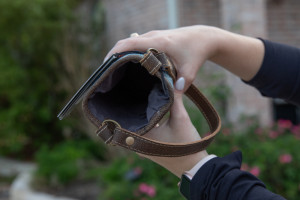 Myra Bag Woven Blue & White Wine Bag with Leather Straps and Detail. Holds One Bottle of Wine