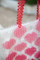Isaac Mizrahi Beaded Heart Crossbody with Snap Closure, Two Interior Pockets, one with Zipper Closure. 12" x 13"