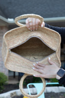Mexican Applique Straw Embrodied Bag with Two Handles and Zip Top Closure. 15" x 9"