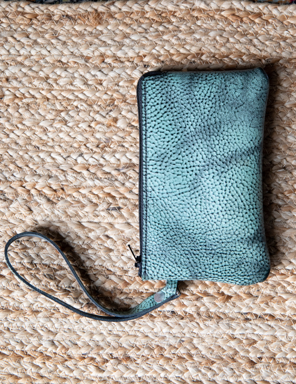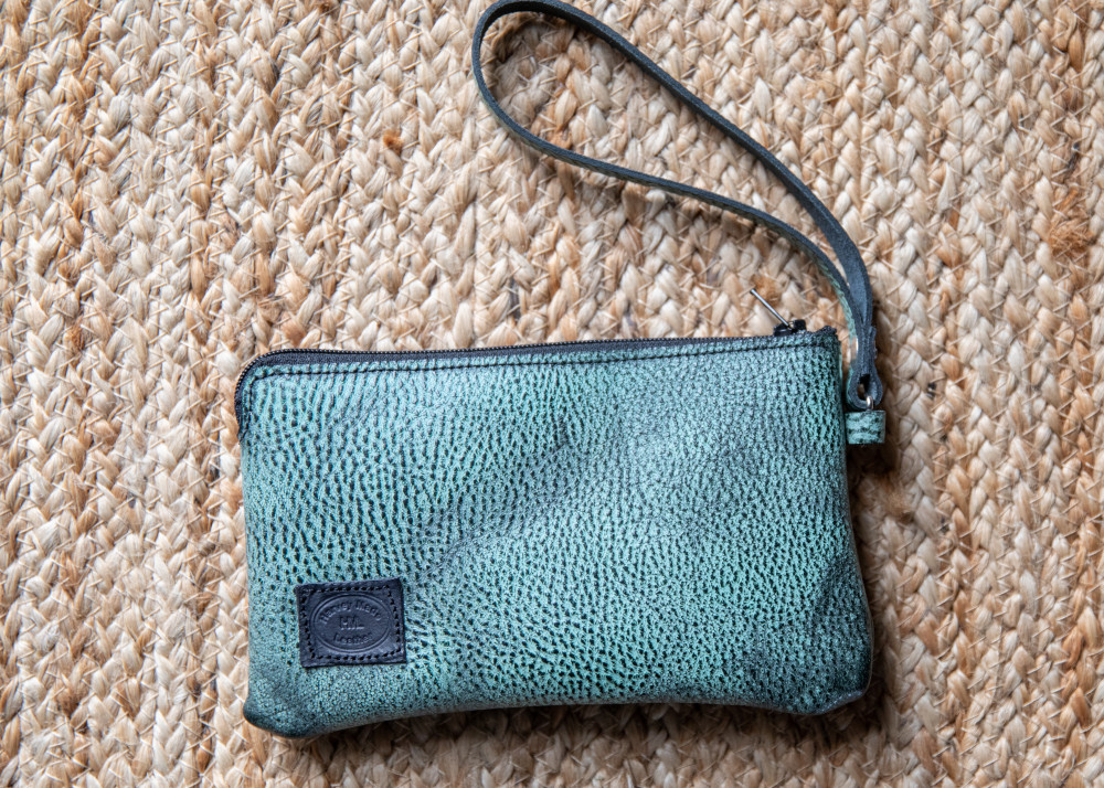 Harvey Leather Handmade Turqoise Leather Wristlet