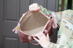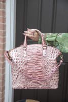 Brahmin Pink Duxbury Melbourne Collection Tote. Two Shoulder Straps, One Exterior Pocket & Zip Top Closure. 4 Interior Pockets, Two with Zip Closure. Includes Credit Card & ID Holder with 6 Slots. 12" x 12"
