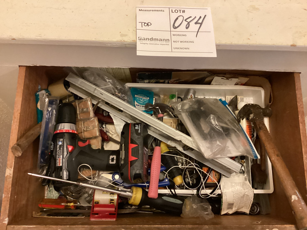 drill, hammer, screwdriver, Pliers, tape, and more. Drawer clean out