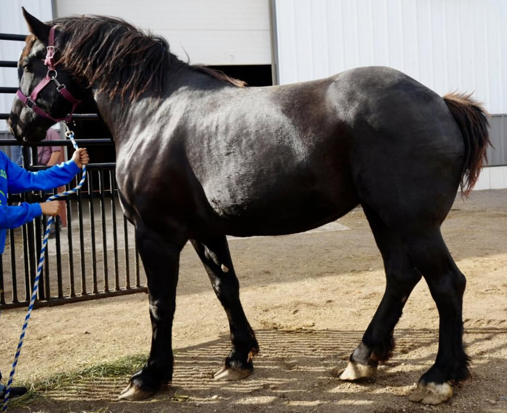 This registered Percheron mare is THICKER THAN A SNICKER and exposed back to MLC LAST MCGHEE, due in spring of '26! π€°β¨ Broke to ALL farm machinery AND broke to ride - talk about versatile! πͺ Kids have played all around her and she's absolutely PERFECT - super sweet, gentle, and bomb-proof! π Beautiful black mare who does it all: work, ride, babysit the kids, AND she's giving you a bonus baby in the spring! πΆ If you want a been-there-done-that mare with a heart of gold and a foal on the way, Brandi's your dream come true! Don't miss this two-for-one deal! π
