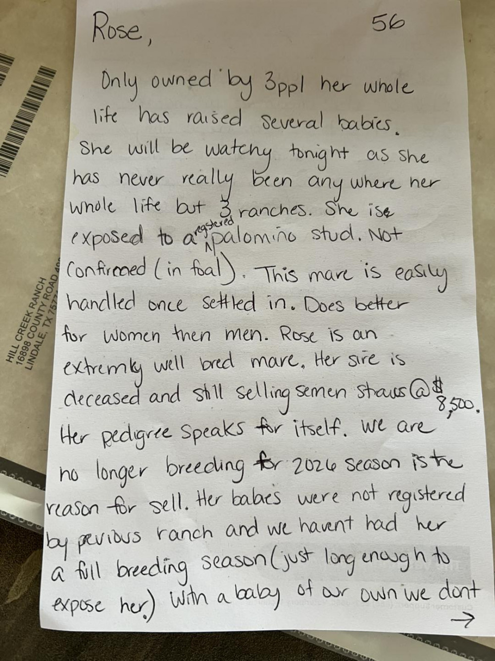 R QH 18 YR BLUE ROAN MARE (#56 R) Ladies Night Horse Sale Nov. 1st 2025