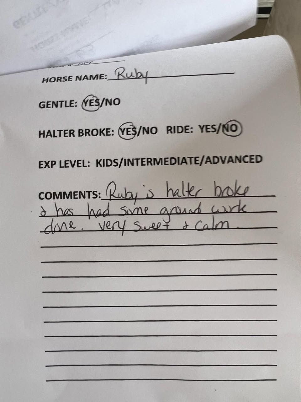 RUDY IS A HALTER BROKE AND HAS HAD SOME GROUND WORK DONE . SWEET AND CALM
