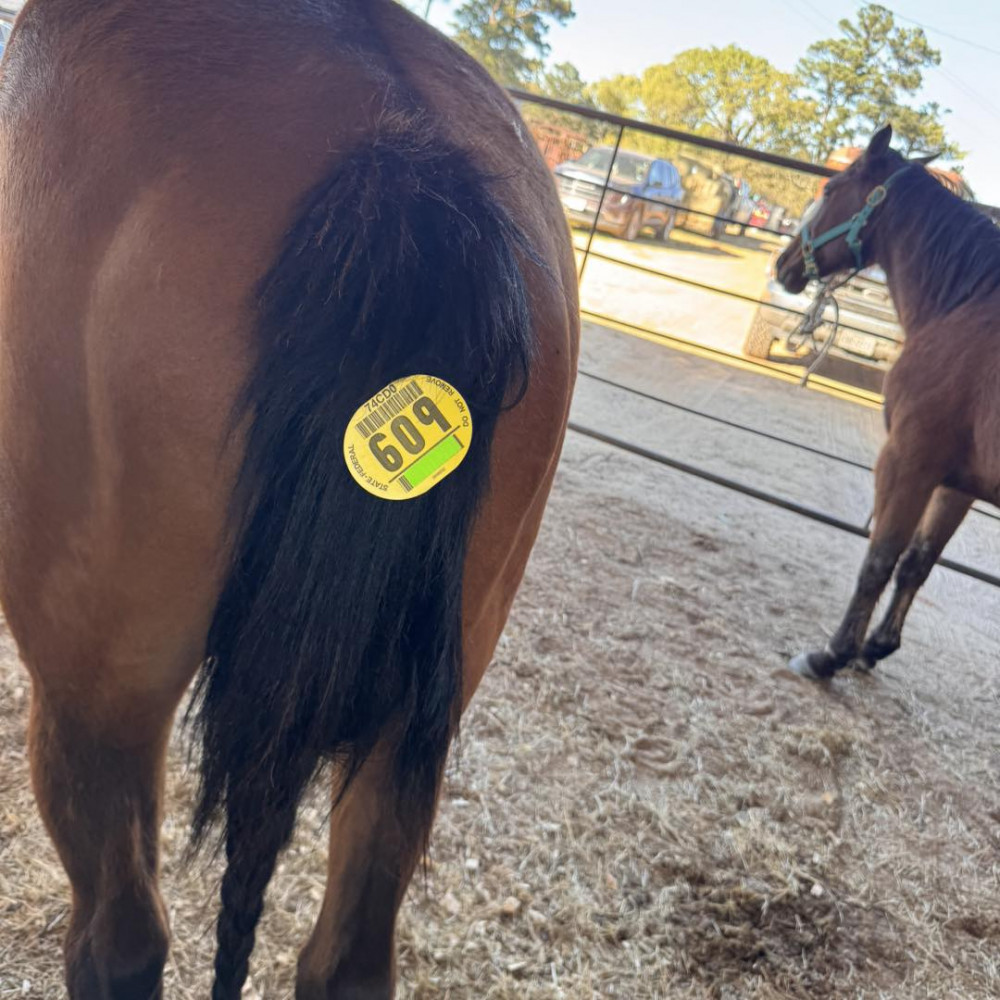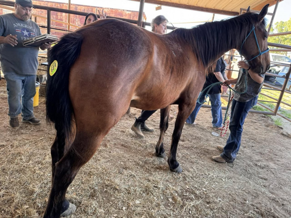 QH 7 YR OLD BAY MARE (#609) MARCH 21 2026 HORSE SALE SADDLES START @ 6 PM