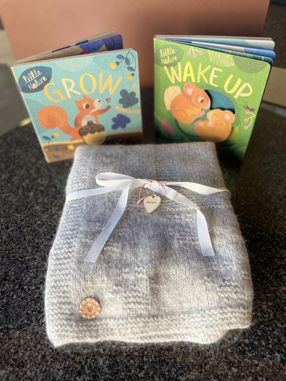 Every child deserves the best. This heavenly soft blanket is handmade from the finest alpaca yarn. Alpaca wool is known for its softness, warmth, and hypoallergenic properties. It is often compared to cashmere or mohair for its softness and luxury feel. Fun fact: it took 35,420 stitches to make this blanket and 40 hours of work. The blanket measures 26.5" x 36.5". It is pre-washed, steamed, and ready to be loved. Care instructions: Handwash in lukewarm water with Woolite delicates detergent or similar. Roll in a towel to take excess water, and spread on the towel to air dry. Wake Up & Grow books are made from 100% recycled material. The Little Nature Series offers a sweet, introduction to the natural world for babies, toddlers, and preschoolers. www.thebooklady.net