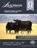 Catalog and Information Click the link to access the online catalog: https://issuu.com/leachman/docs/2025_leachman_topline_california_sale 10.4.2025 Leachman Topline Bull Sale 1pm PT | 0 | — |