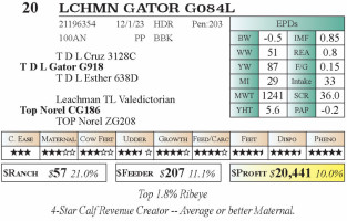 LCHMN Gator G084L AAA 10.4.2025 Leachman Topline Bull Sale 1pm PT | 20 | $ 10,000.00 |
