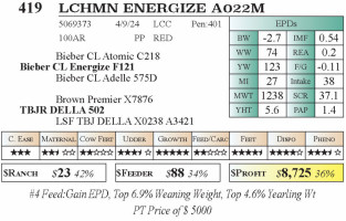 LCHMN ENERGIZE A022M #4 $Feeder, #3 Weaning WT EPD, #3 Marbling EPD, #5 Feed:Gain EPD 11.21.2025 Leachman Fall Roundup Bull & Female Sale 10:00 am MTN | 419 | $ 5,000.00 |