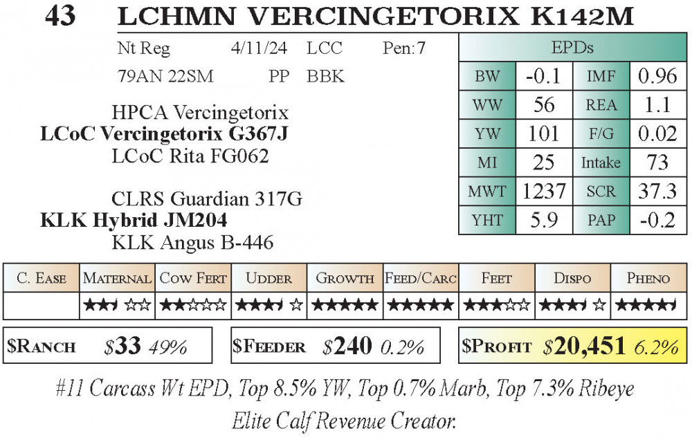 #11 Carcass Wt EPD, Top 8.5% YW, Top 0.7% Marb, Top 7.3% Ribeye