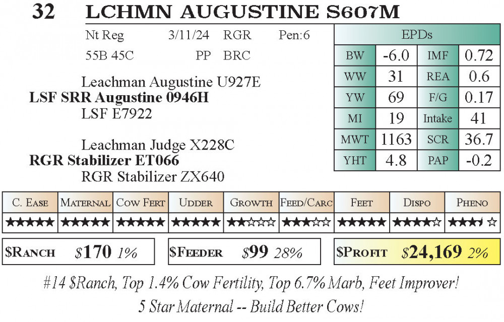 LCHMN AUGUSTINE S607M (#32) 11.15.2025 Leachman Central Plains Stabilizer Bull Sale 1:00 PM CT