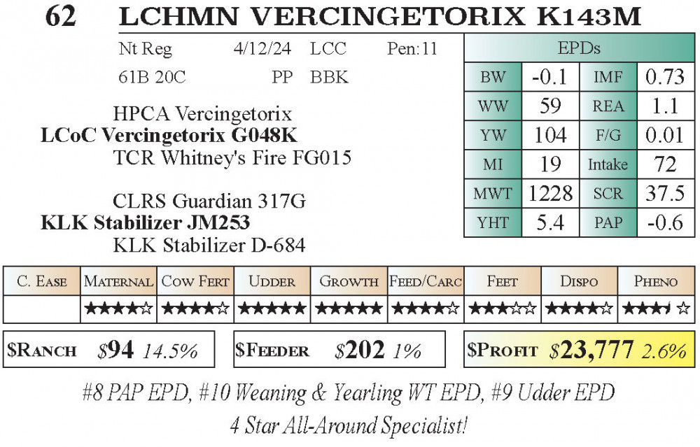 LCHMN VERCINGETORIX K143M (#62) 11.15.2025 Leachman Central Plains Stabilizer Bull Sale 1:00 PM CT