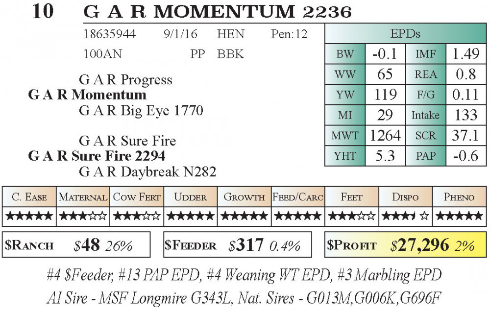 #4 $Feeder, #13 PAP EPD, #4 Weaning WT EPD, #3 Marbling EPD