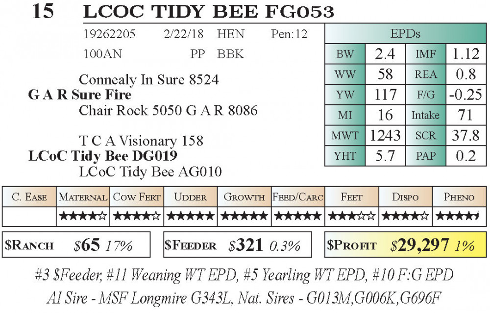 LCOC TIDY BEE FG053 (#15) 11.21.2025 Leachman Fall Roundup Bull & Female Sale 10:00 am MTN Angus Female