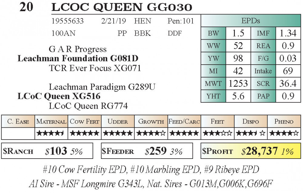 LCOC QUEEN GG030 (#20) 11.21.2025 Leachman Fall Roundup Bull & Female Sale 10:00 am MTN Angus Female