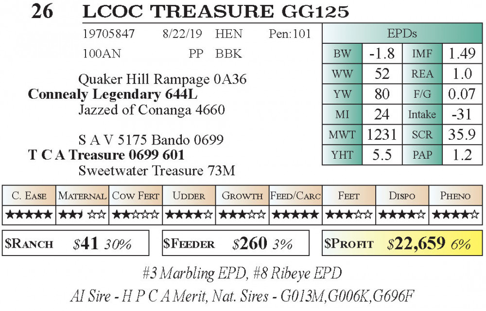 LCOC TREASURE GG125 (#26) 11.21.2025 Leachman Fall Roundup Bull & Female Sale 10:00 am MTN Angus Female
