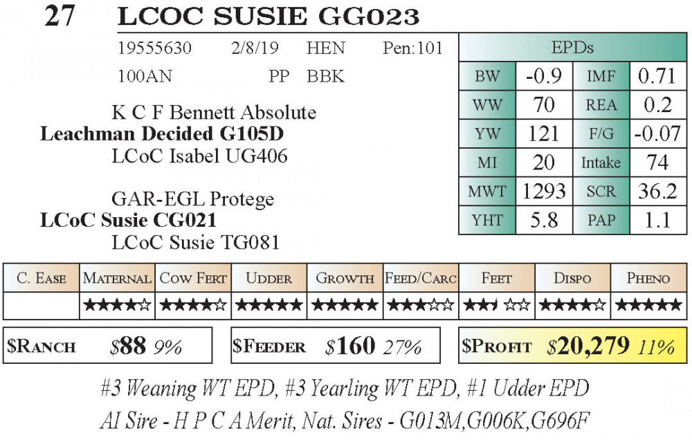 LCOC SUSIE GG023 (#27) 11.21.2025 Leachman Fall Roundup Bull & Female Sale 10:00 am MTN Angus Female