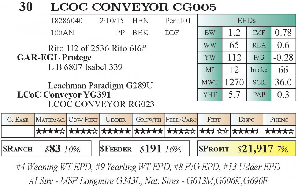 #4 Weaning WT EPD, #9 Yearling WT EPD, #8 F:G EPD, #13 Udder EPD