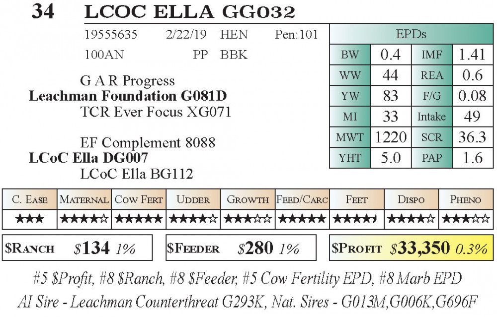 #5 $Profit, #8 $Ranch, #8 $Feeder, #5 Cow Fertility EPD, #8 Marb EPD