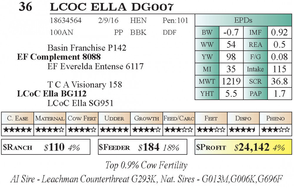 LCOC ELLA DG007 (#36) 11.21.2025 Leachman Fall Roundup Bull & Female Sale 10:00 am MTN Angus Female
