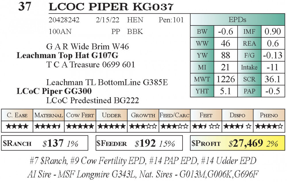 LCOC PIPER KG037 (#37) 11.21.2025 Leachman Fall Roundup Bull & Female Sale 10:00 am MTN Angus Female
