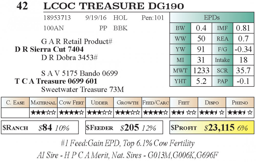 LCOC TREASURE DG190 (#42) 11.21.2025 Leachman Fall Roundup Bull & Female Sale 10:00 am MTN Angus Female