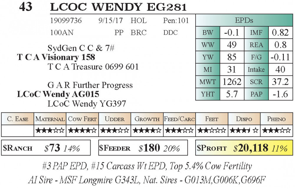 LCOC WENDY EG281 (#43) 11.21.2025 Leachman Fall Roundup Bull & Female Sale 10:00 am MTN Angus Female