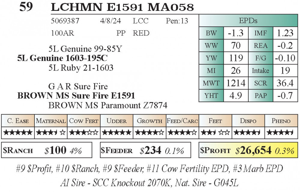 #9 $Profit, #10 $Ranch, #9 $Feeder, #11 Cow Fertility EPD, #3 Marb EPD