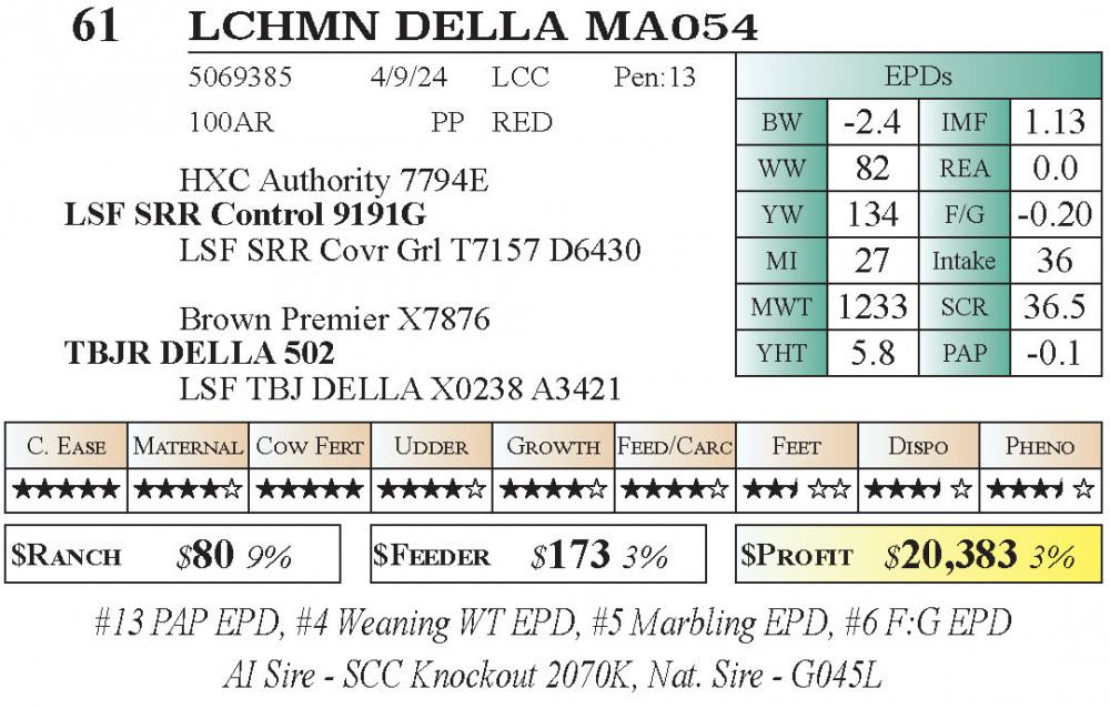 #13 PAP EPD, #4 Weaning WT EPD, #5 Marbling EPD, #6 F:G EPD