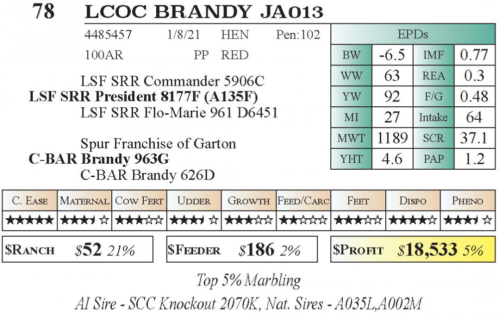 LCOC BRANDY JA013 (#78) 11.21.2025 Leachman Fall Roundup Bull & Female Sale 10:00 am MTN Red Angus Female