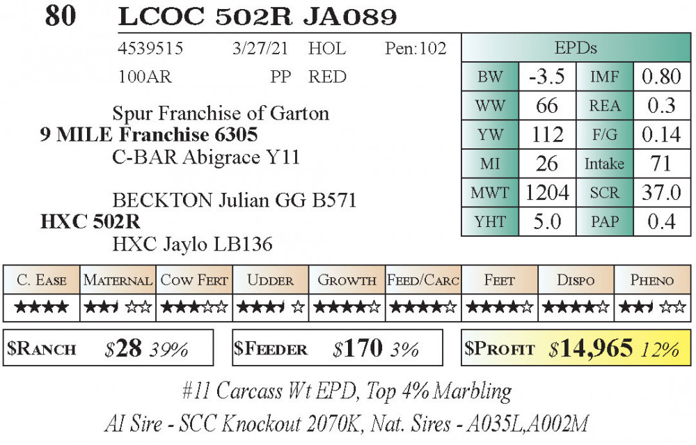 LCOC 502R JA089 (#80) 11.21.2025 Leachman Fall Roundup Bull & Female Sale 10:00 am MTN Red Angus Female