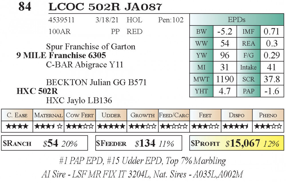 #1 PAP EPD, #15 Udder EPD, Top 7% Marbling