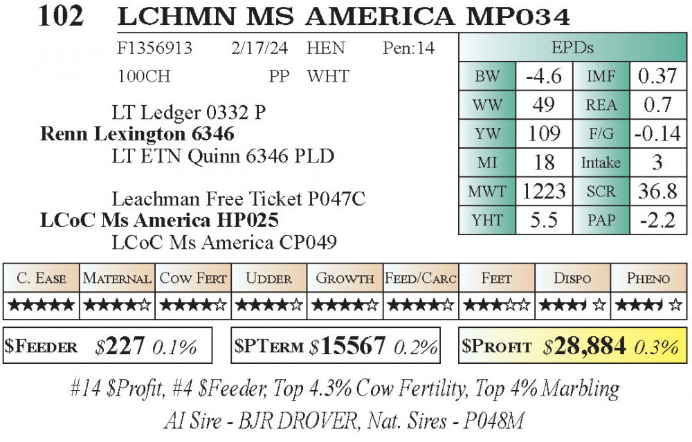 #14 $Profit, #4 $Feeder, Top 4.3% Cow Fertility, Top 4% Marbling