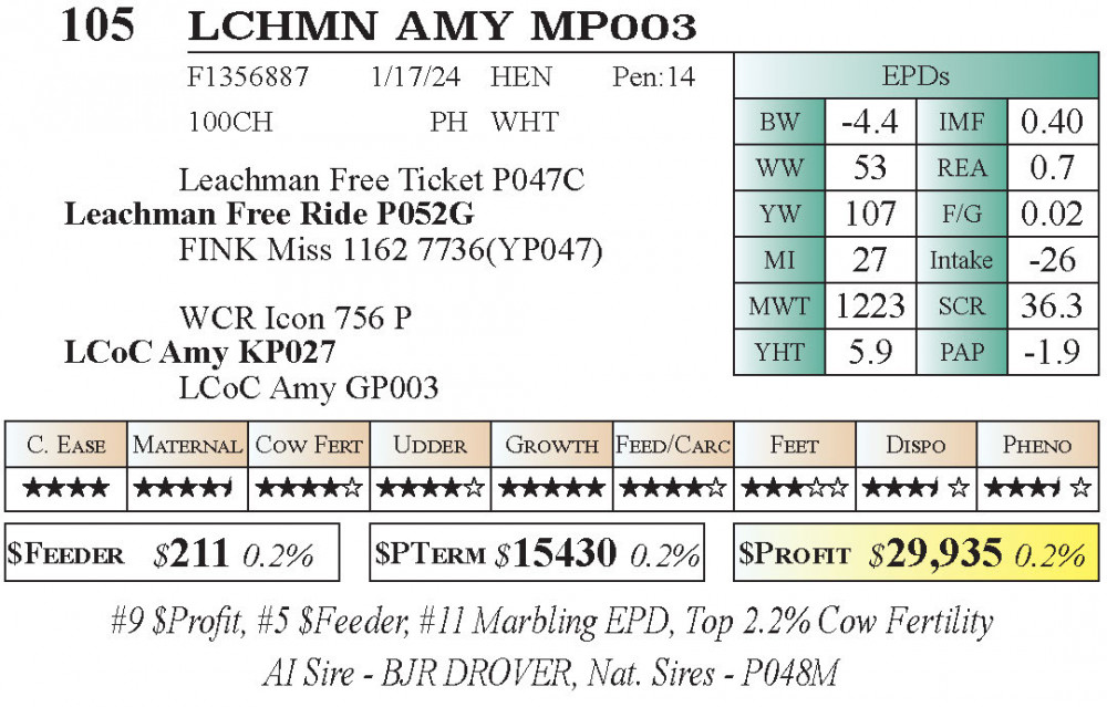 #9 $Profit, #5 $Feeder, #11 Marbling EPD, Top 2.2% Cow Fertility