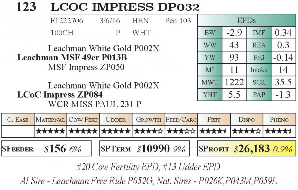 LCOC IMPRESS DP032 (#123) 11.21.2025 Leachman Fall Roundup Bull & Female Sale 10:00 am MTN Charolais Female Charolais Female