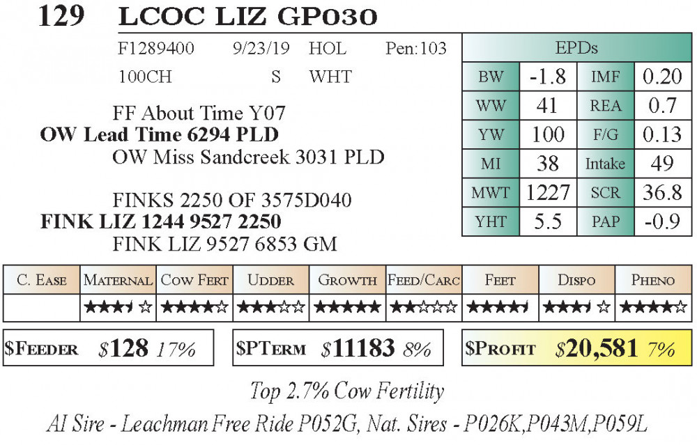 LCOC LIZ GP030 (#129) 11.21.2025 Leachman Fall Roundup Bull & Female Sale 10:00 am MTN Charolais Female Charolais Female