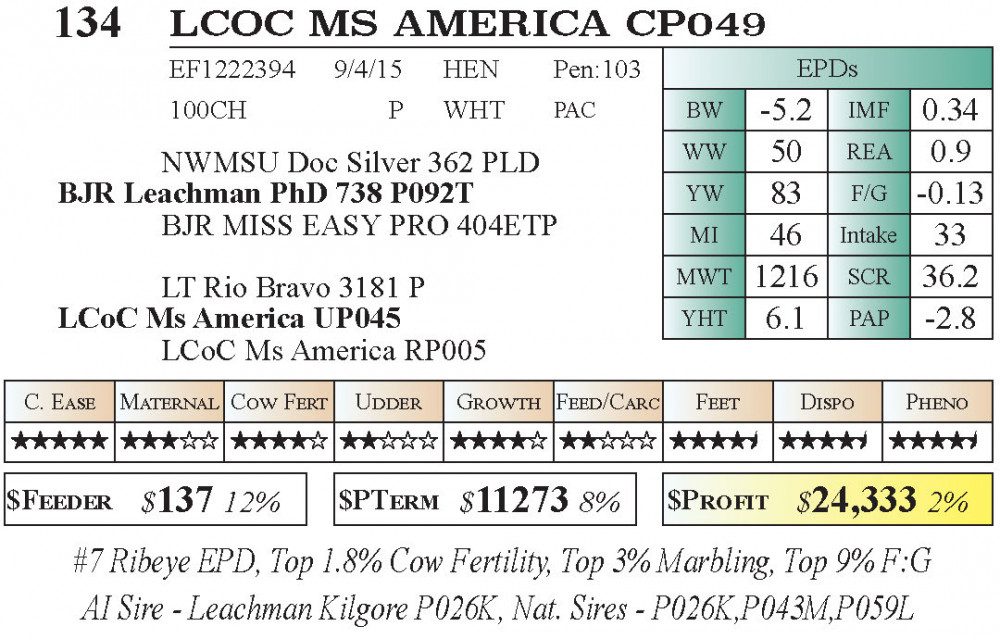 #7 Ribeye EPD, Top 1.8% Cow Fertility, Top 3% Marbling, Top 9% F:G