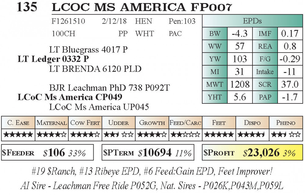 #19 $Ranch, #13 Ribeye EPD, #6 Feed:Gain EPD, Feet Improver!