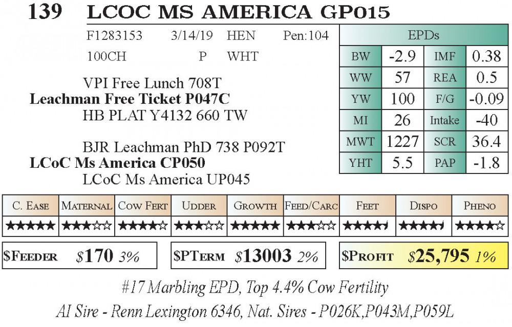 LCOC MS AMERICA GP015 (#139) 11.21.2025 Leachman Fall Roundup Bull & Female Sale 10:00 am MTN Charolais Female Charolais Female