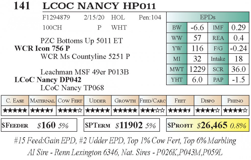 #15 Feed:Gain EPD, #2 Udder EPD, Top 1% Cow Fert, Top 6% Marbling