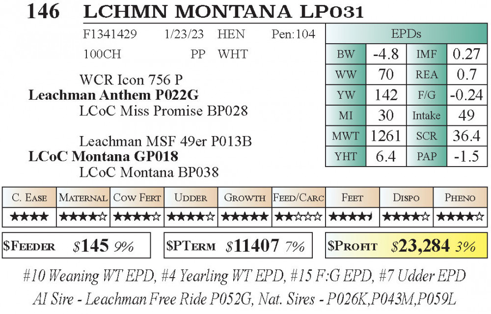 LCHMN MONTANA LP031 (#146) 11.21.2025 Leachman Fall Roundup Bull & Female Sale 10:00 am MTN Charolais Female Charolais Female