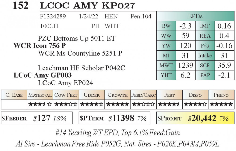 #14 Yearling WT EPD, Top 6.1% Feed:Gain