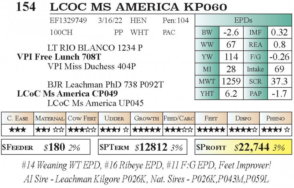 #14 Weaning WT EPD, #16 Ribeye EPD, #11 F:G EPD, Feet Improver!