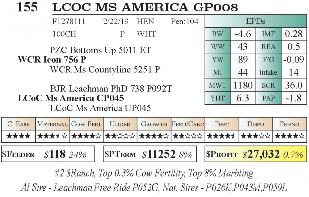 #2 $Ranch, Top 0.3% Cow Fertility, Top 8% Marbling